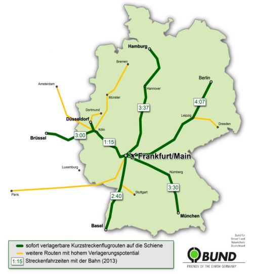 BUND-Konzept zur sofortigen Verlagerung von Kurzstreckenflügen am Flughafen Frankfurt am Main auf die Bahn.