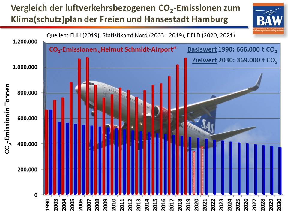 Die CO2-Emissionen (Halbstreckenprinzip) durch den Hamburger Flughafen betrugen im Jahr 2020 wegen der Corona-Krise "nur" ca. 80 % des im Hamburger Klimaplan festgelegten Klimabudgets für 2030! Es gab nur ein sehr reduziertes Flugaufkommen.