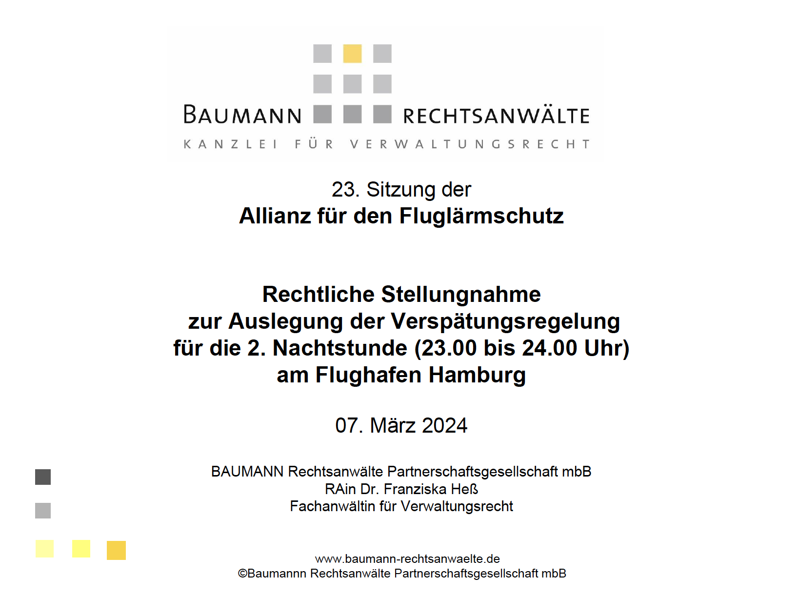 Rechtliche Stellungnahme zur Auslegung der Verspätungsregelung für die 2. Nachtstunde (23.00 bis 24.00 Uhr) am Flughafen Hamburg